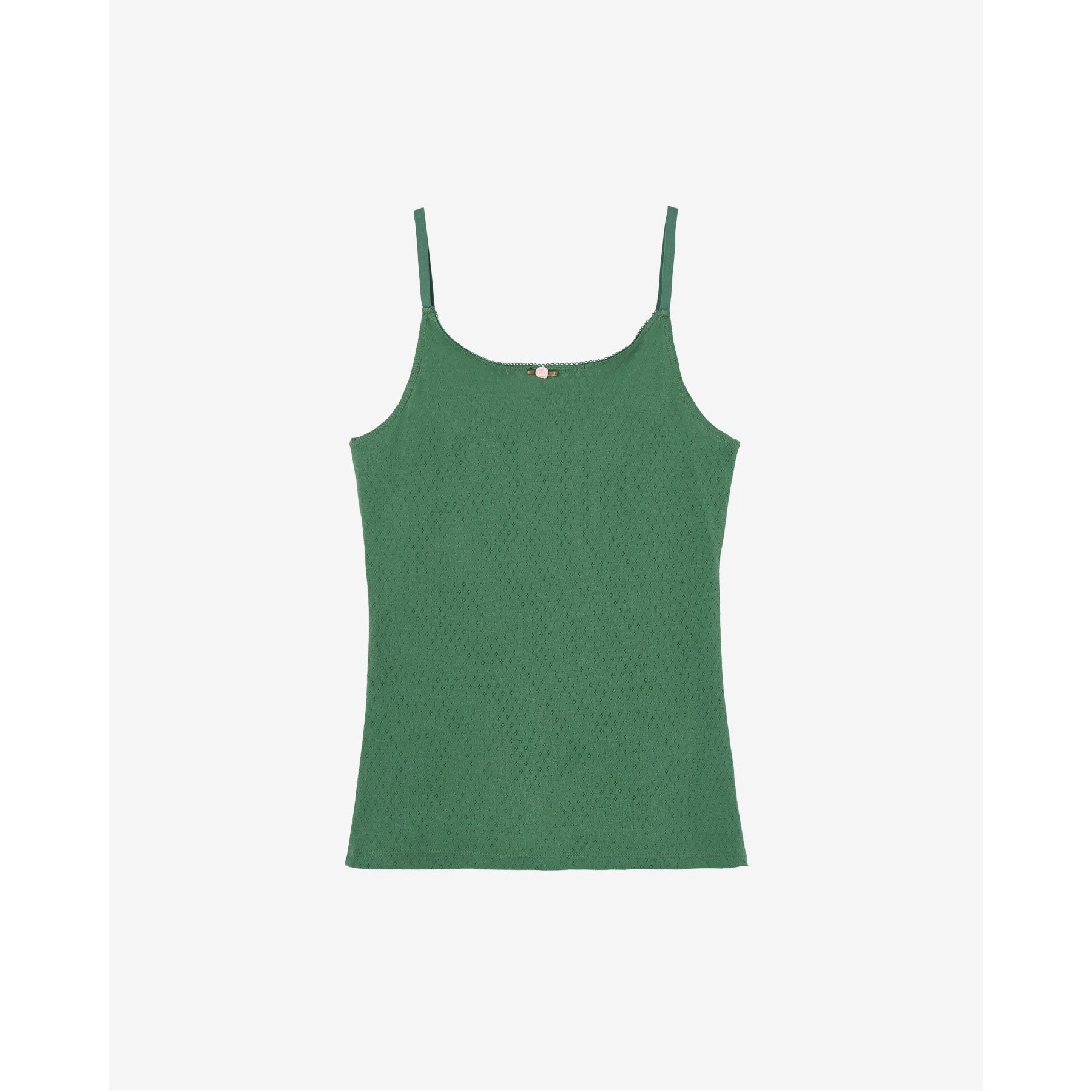 Su tejido de algodón orgánico con calado decorativo es muy suave para que te sientas comodísima mientras la llevas.