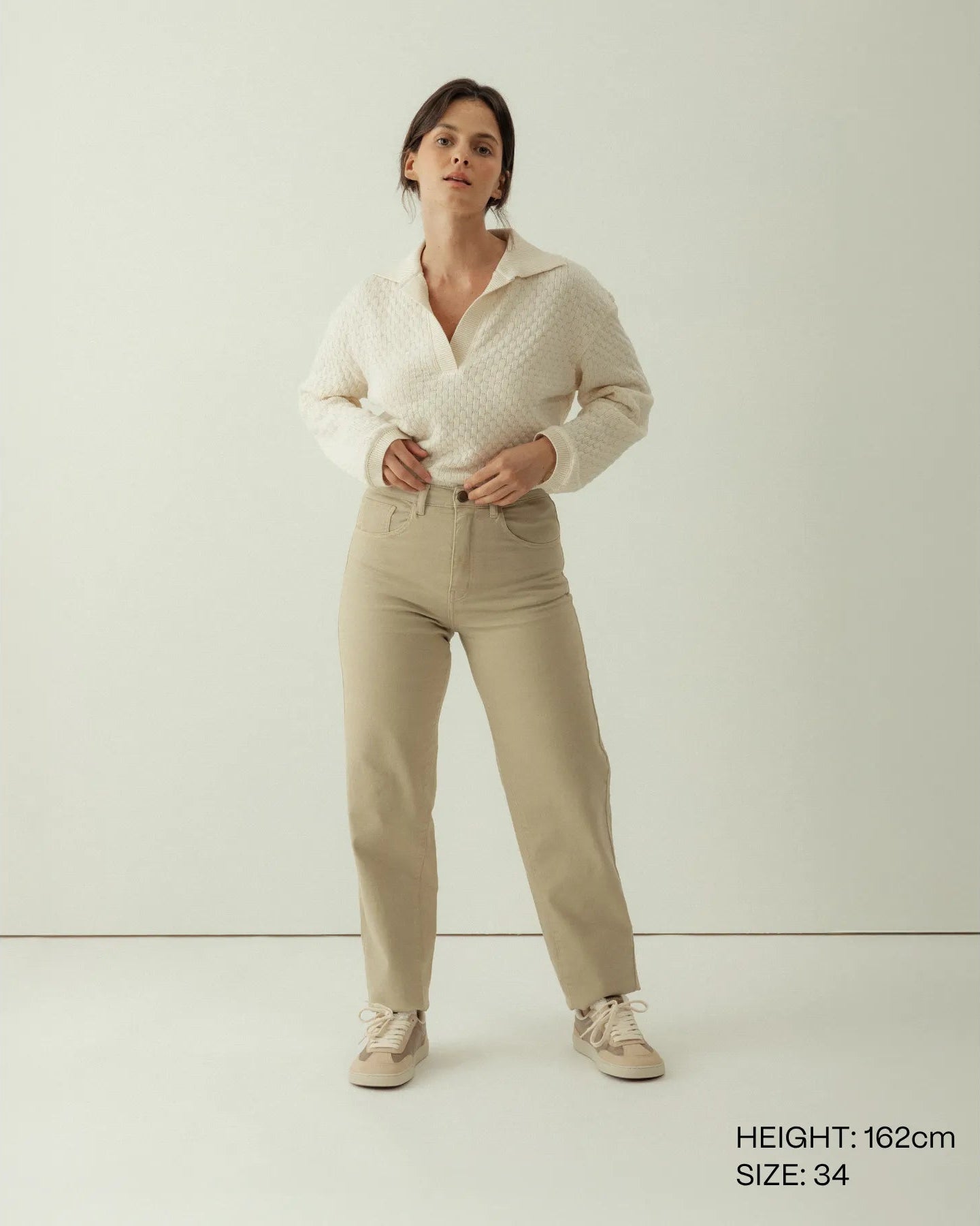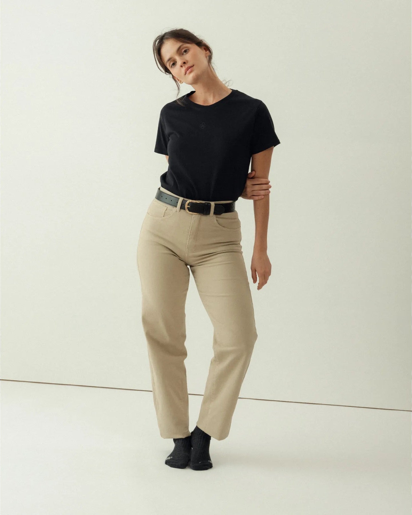 Tejido: 97% algodón sostenible BCI, 3% elastano. El tejido perfecto para ir cómoda del día a la noche y para que se adapte a tu silueta sin apretar.