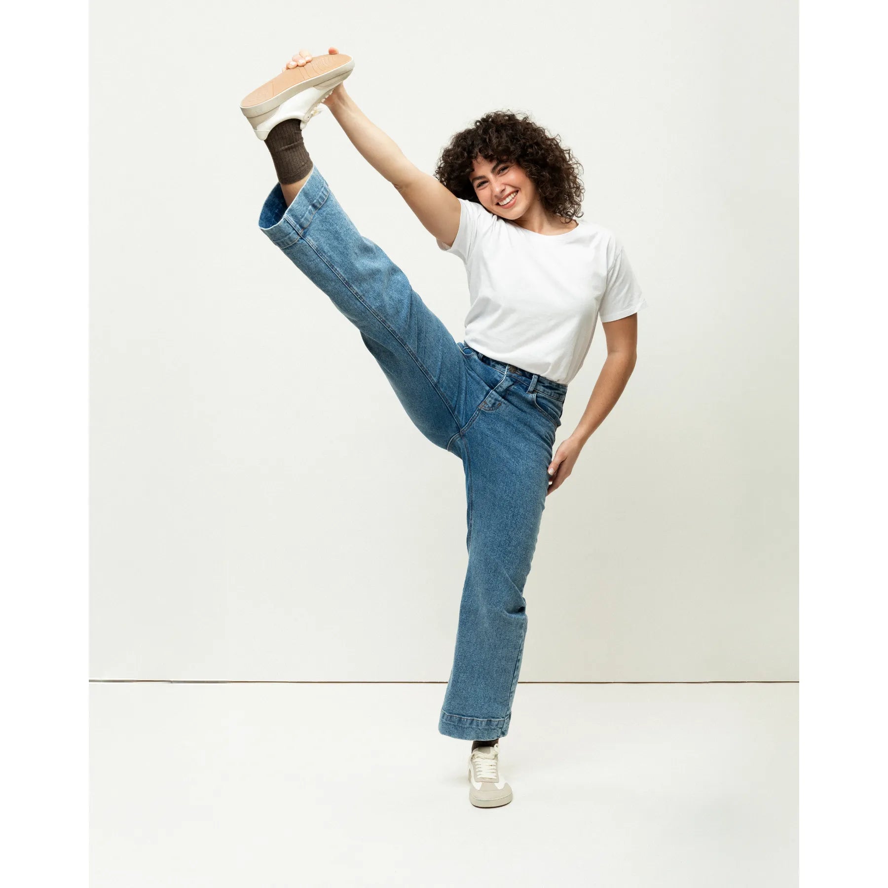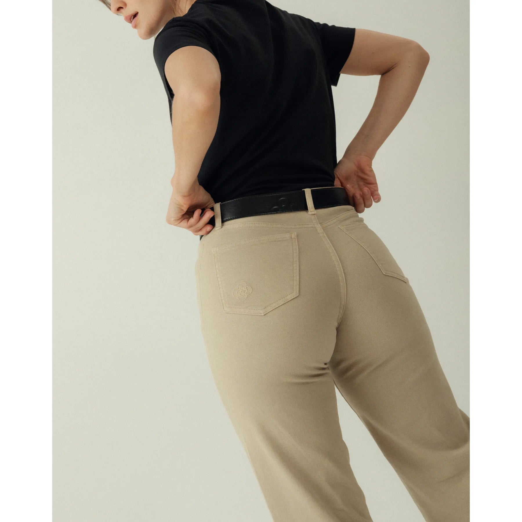 Pantalones realizados generalmente de fibras naturales: algodón orgánico, lino, viscosa, tencel y botellas recicladas, sin crueldad animal. Bueno para el planeta y bueno para tu piel.
