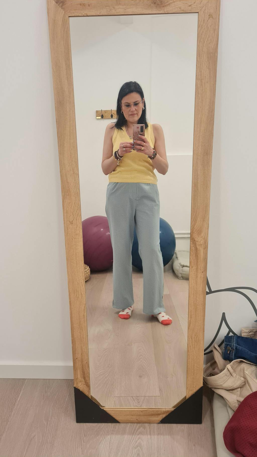 Ligero, fluido y con una caída natural, nuestro pantalón vichy aguamarina es la combinación perfecta de estilo y confort. Su corte recto estiliza la silueta sin perder movimiento, convirtiéndolo en una opción ideal para los días en los que buscas un look fresco y sofisticado.