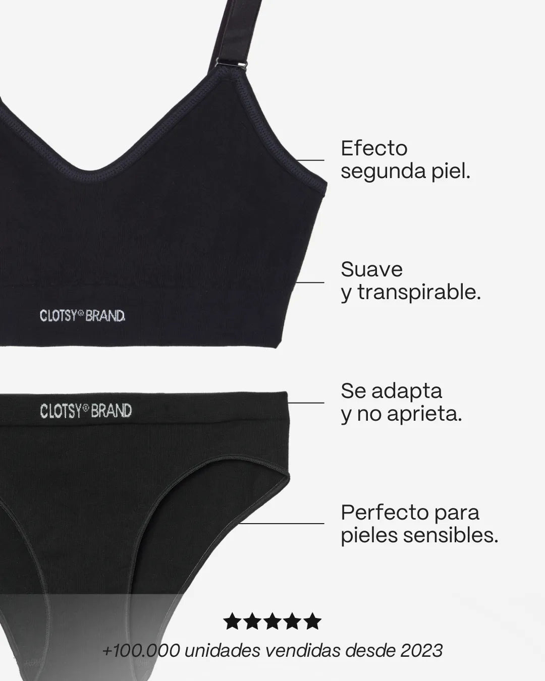 Conjunto Negro: Bralette Sublime + Braguita Clásica