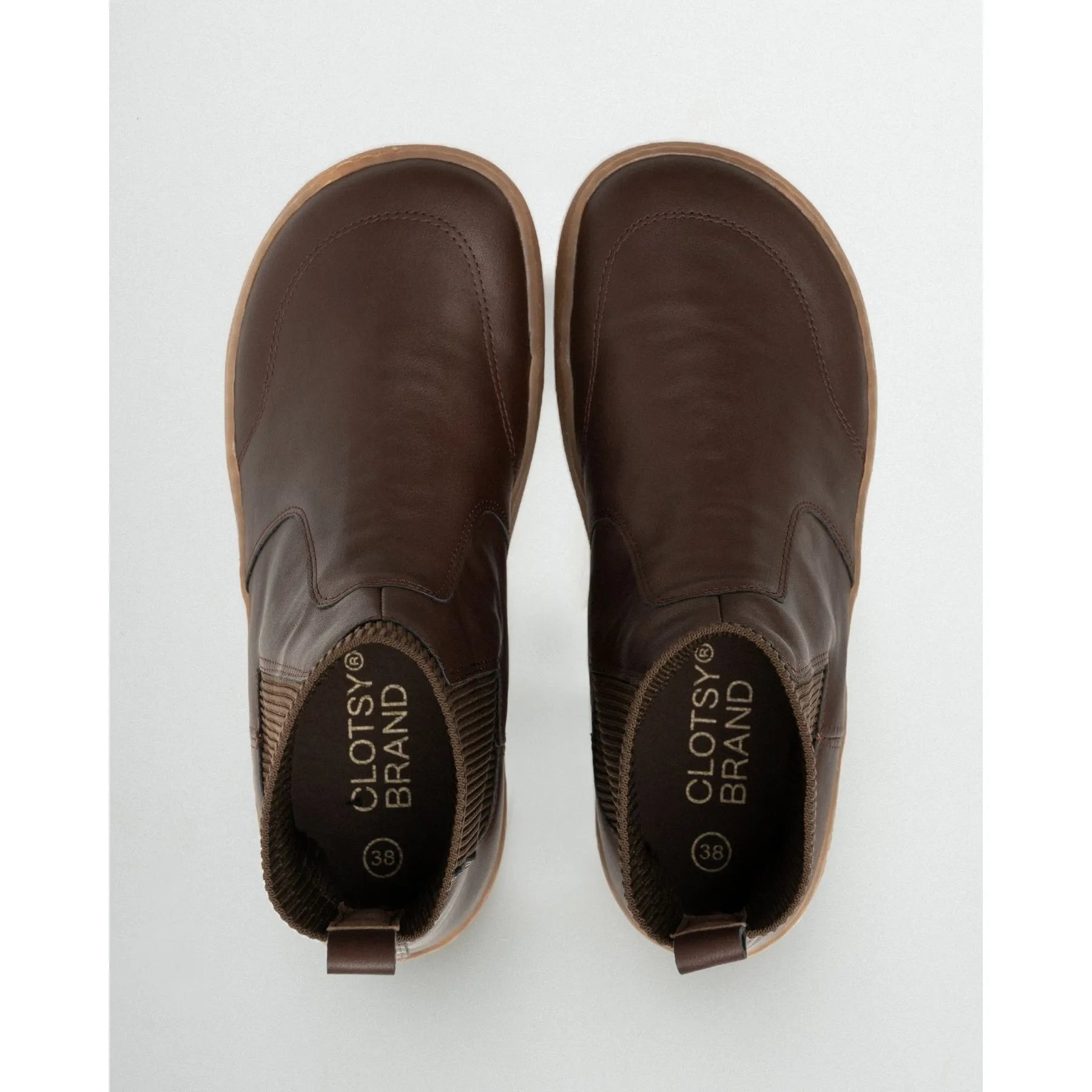 En Clotsy hemos reinventado estos botines de tradición british en su versión más cómoda y respetuosa. De media caña y elástico lateral (estilo calcetín).