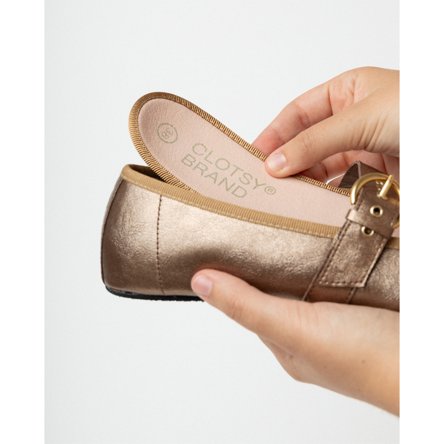 Cuidados: Recomendamos lavar tus bailarinas con un paño húmedo. No lavarlas en la lavadora ni utilizar la secadora. Si las bailarinas se empapan debido a la lluvia, el sudor u otros factores, asegúrate de dejarlas secar completamente antes de guardarlas.
