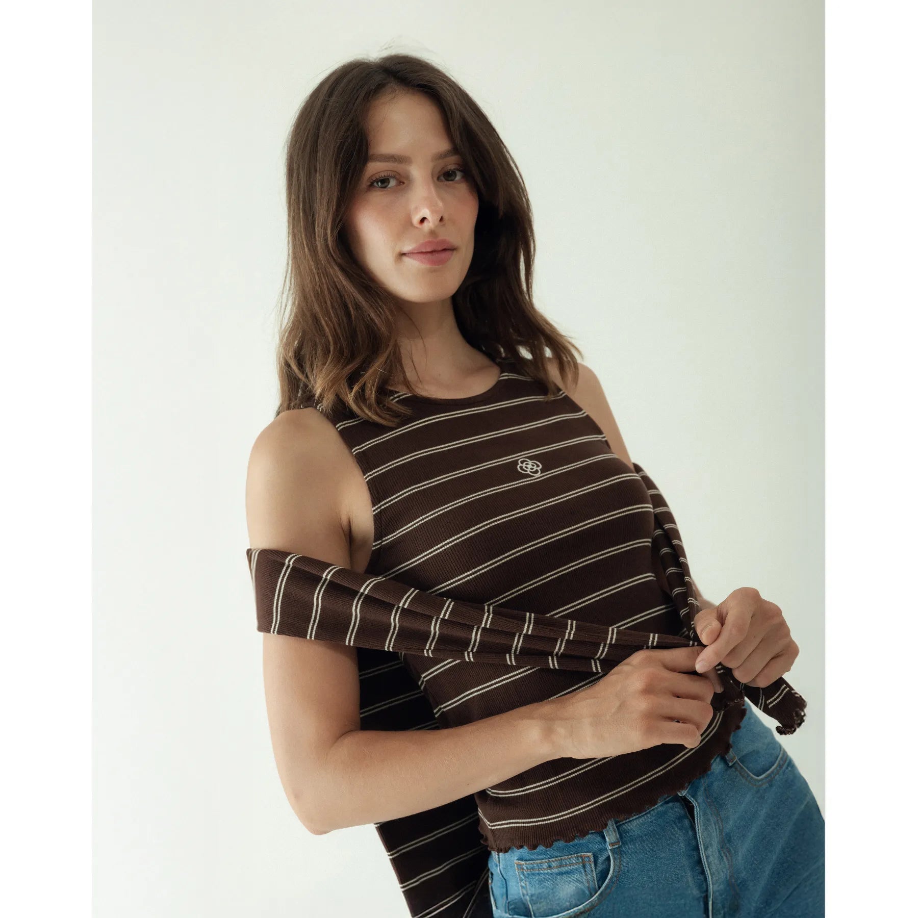Brown ribbed tank top
