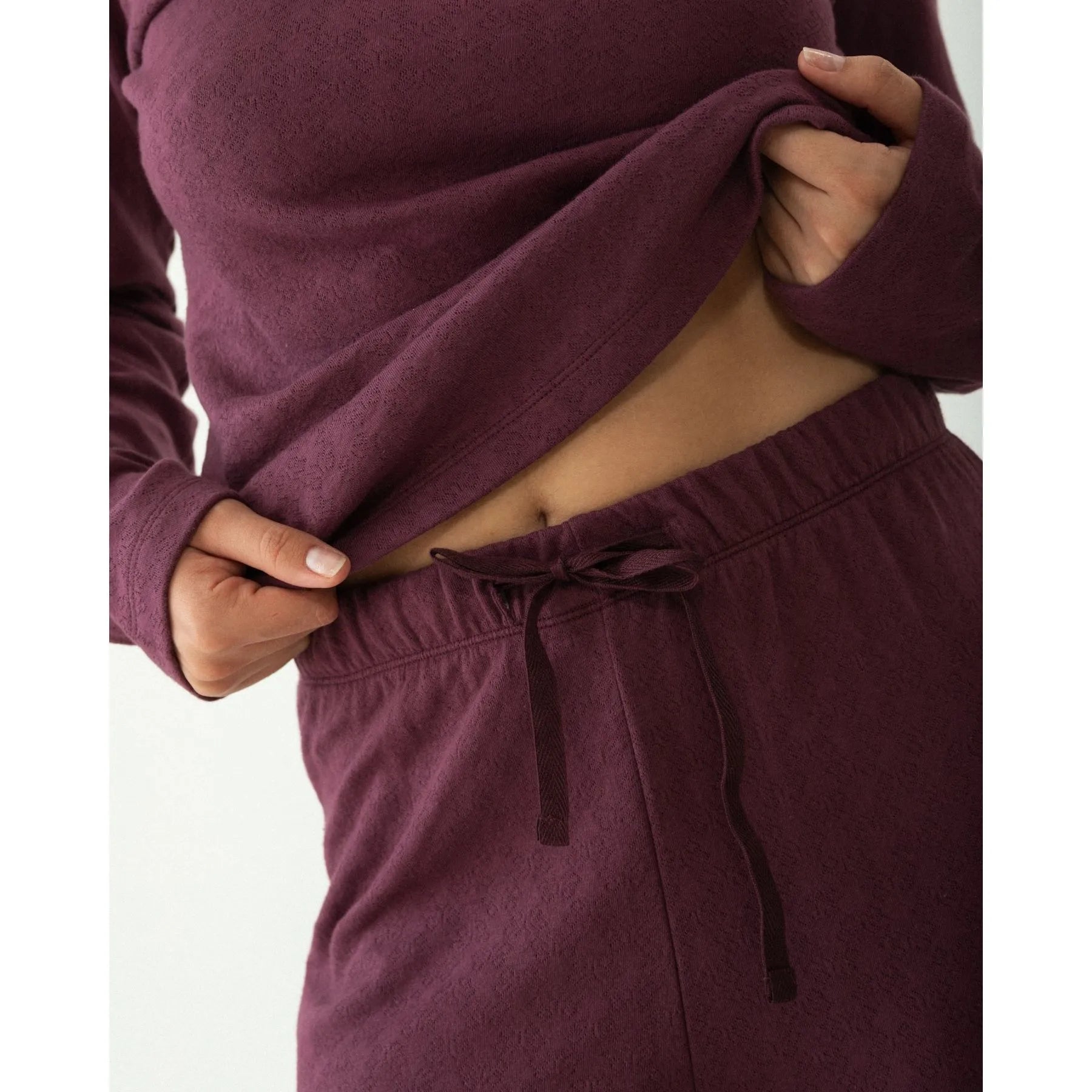 Pijama completo confeccionado en algodón 100% orgánico, con doble tejido suave y calentito y un delicado estampado calado de mariposas.
