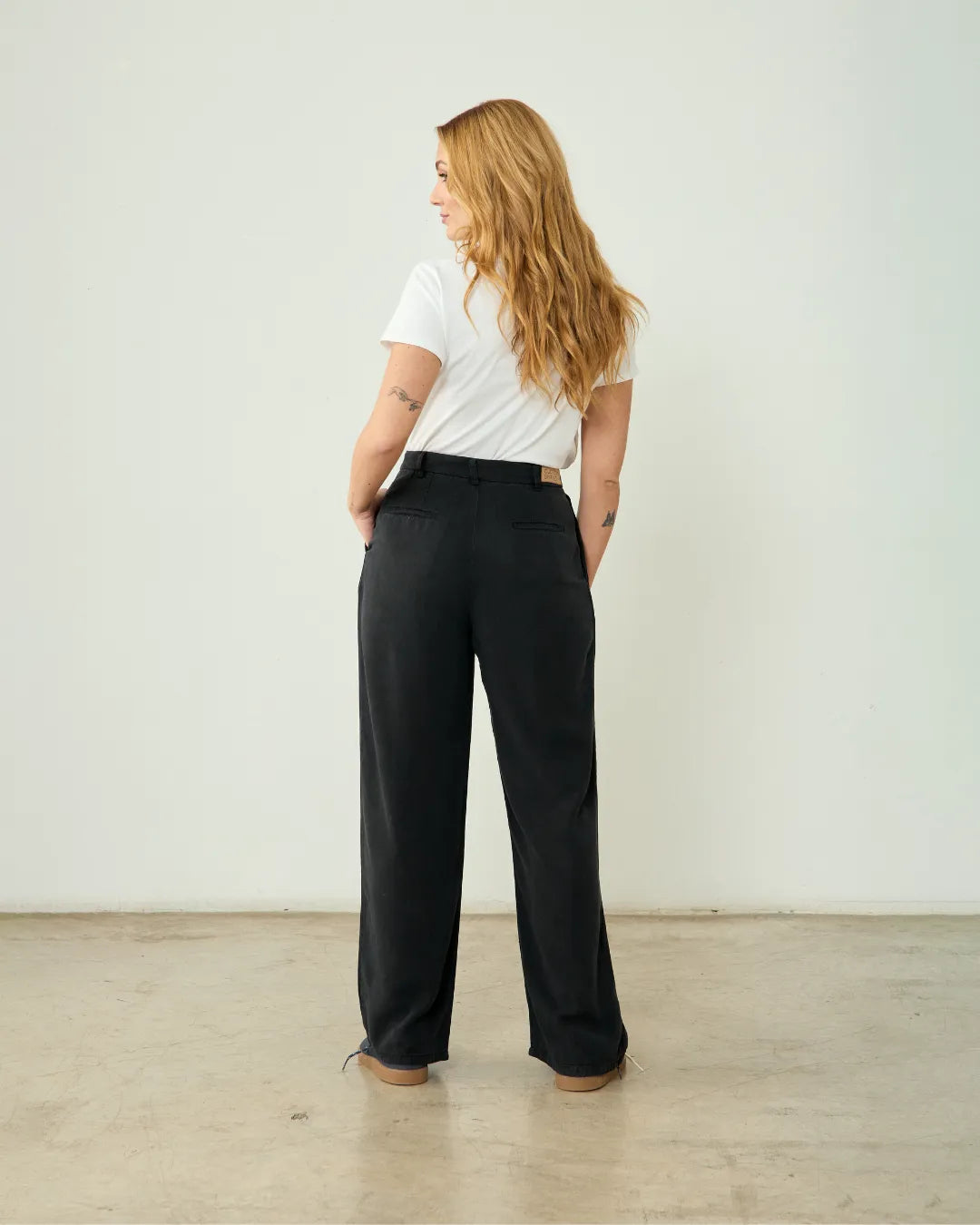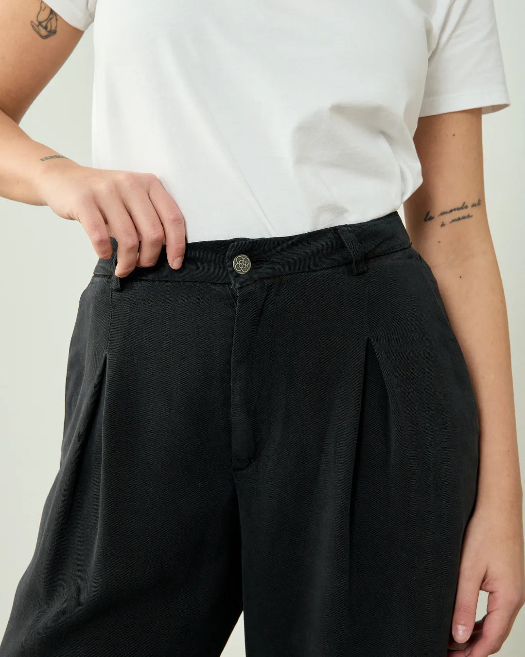 Talle alto-medio a la cintura con pinzas, al estilo diplomático. Bolsillos laterales y de ojal en la parte trasera. Confeccionados en tejido Tencel, frescos y con un tacto increíble.