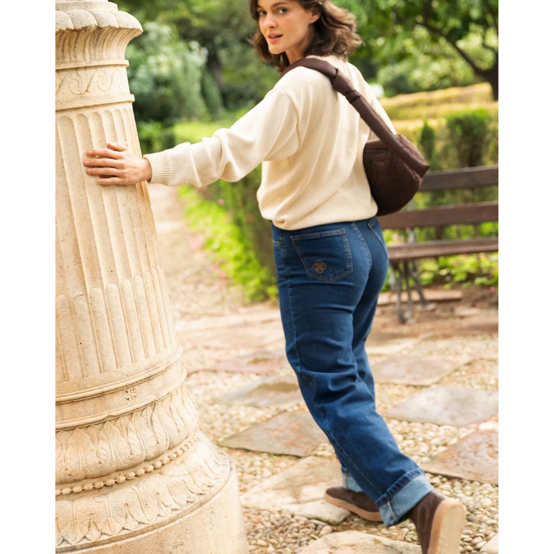 We've updated our Nuria jeans, Clotsy's best-selling model, with a new fabric and a special wash that gives them a more authentic, Texan look.