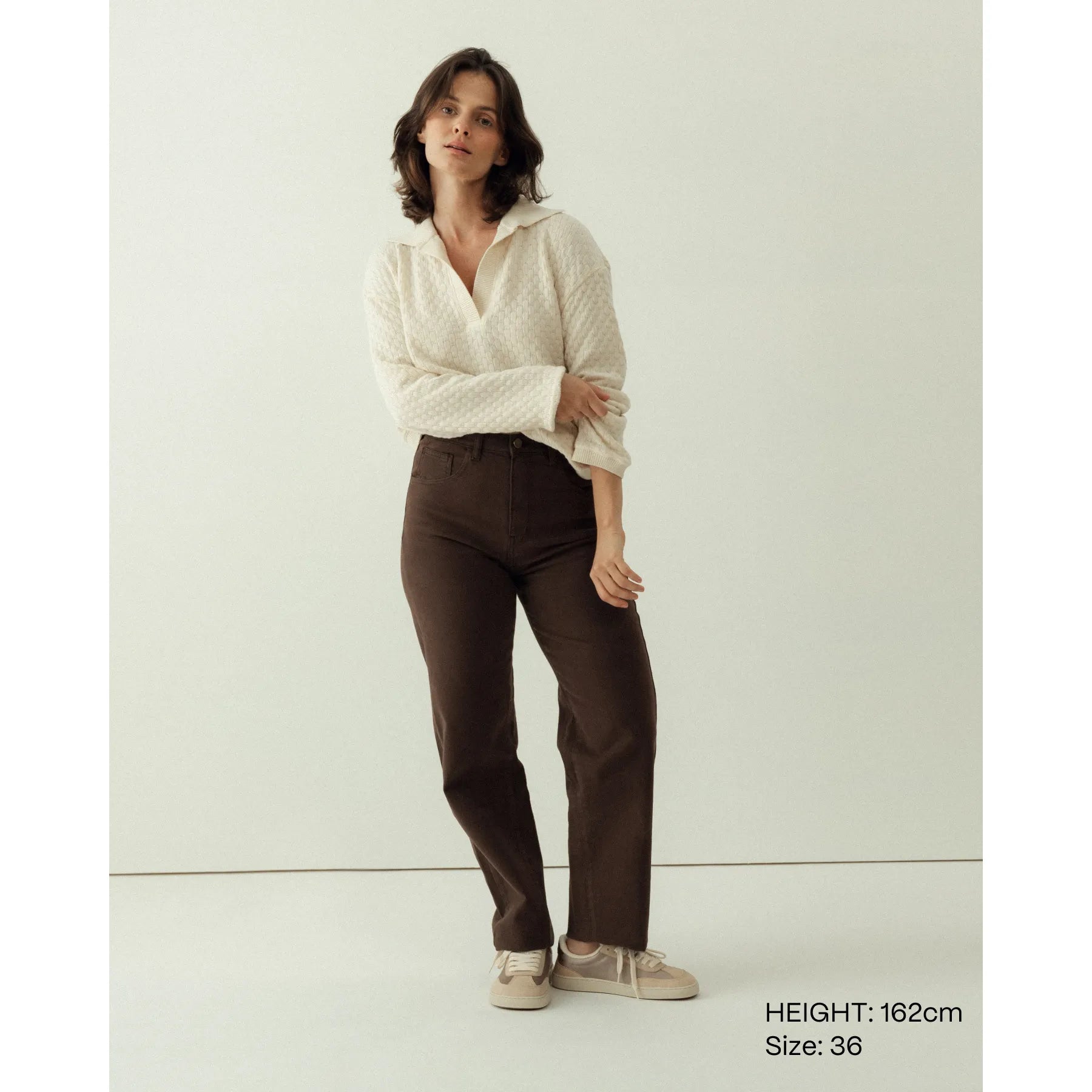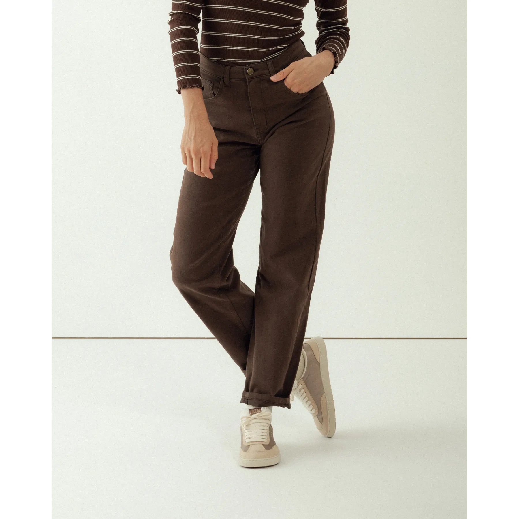 Our Nuria jeans, Clotsy's best-selling model, come in a new color and fabric: a cotton twill with a peach-like feel.
