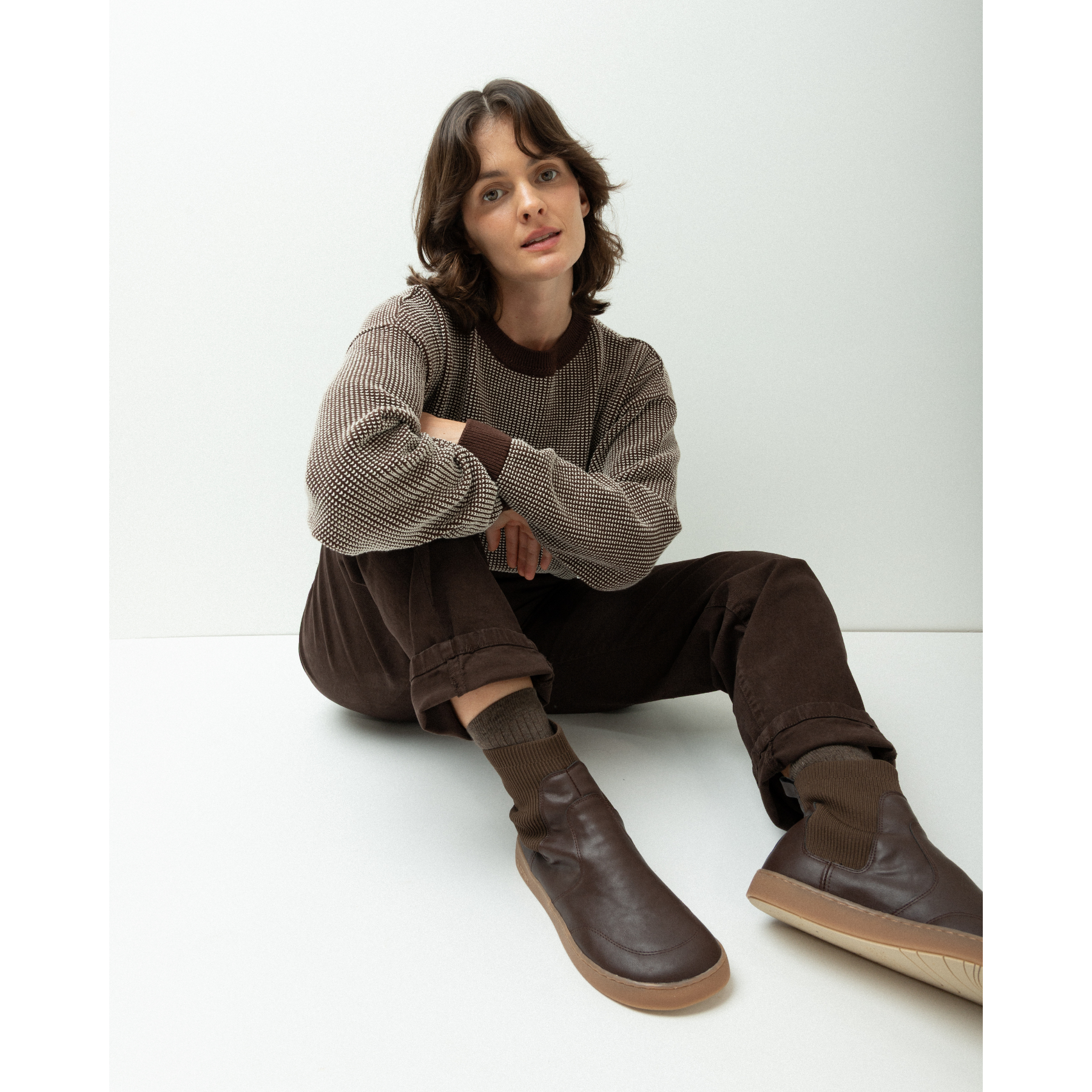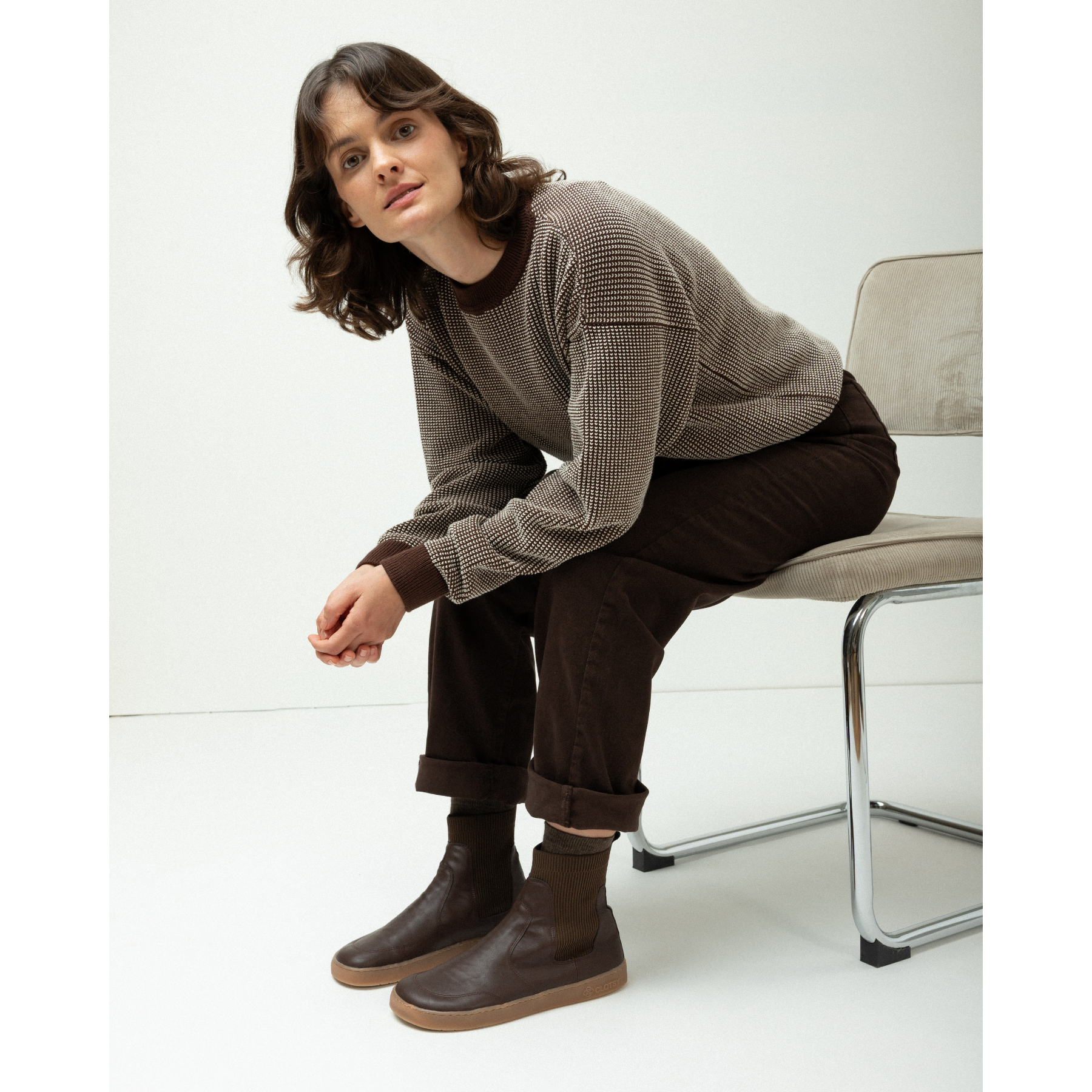 Jersey de punto jaspeado con una combinación de hilos bicolor que te va a enamorar. Confeccionado con algodón 100% orgánico en un taller familiar de Cuenca.